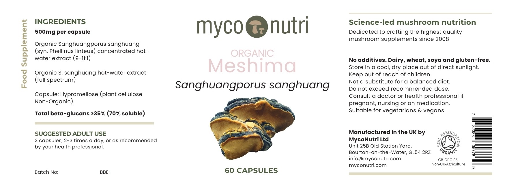 Meshima is highly regarded in Korean traditional medicine and commonly used to support immune function. Its Chinese name, Sang Huang (“mulberry yellow”), refers to its distinctive colour as well as its host tree, the mulberry.